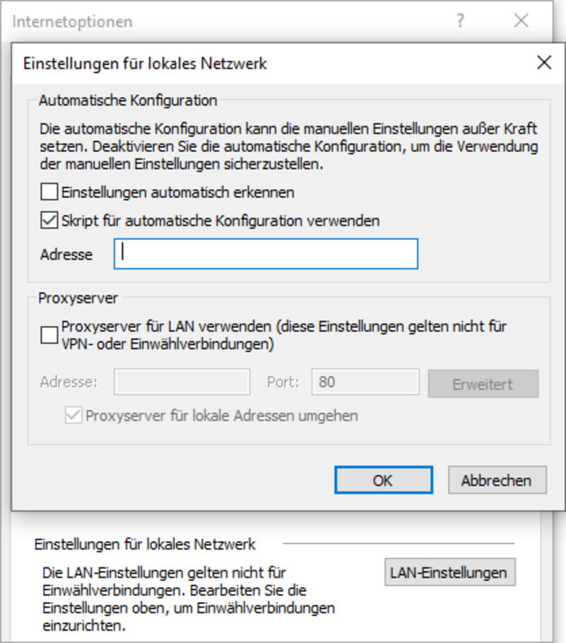 - Öffnen Sie ggf. wieder Ihre Internetoptionen.