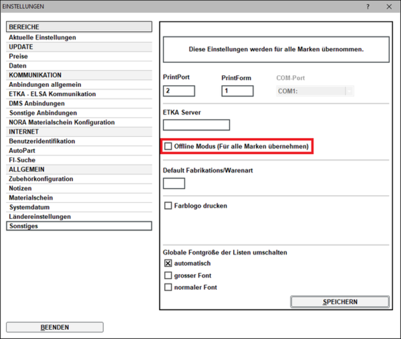Prüfen Sie außerdem, dass der „Offline-Modus” des ETKA nicht aktiv ist, wenn die Einstellung vorhanden ist.