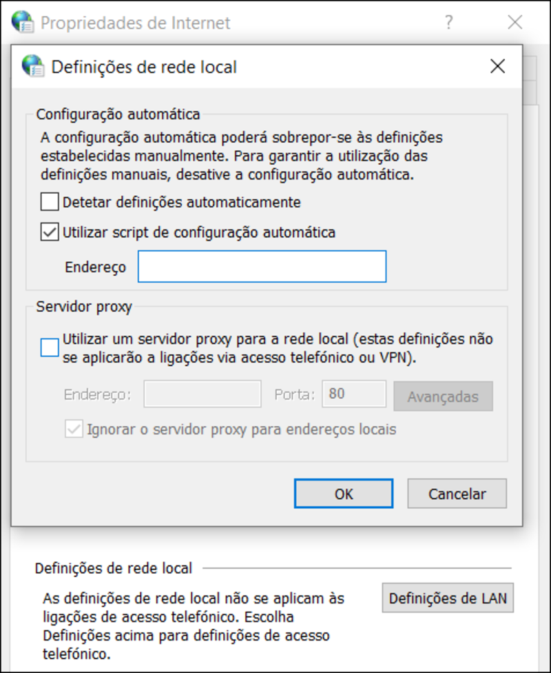 Para o efeito, proceda como se segue:- Se necessário, abra novamente as suas opções de Internet.