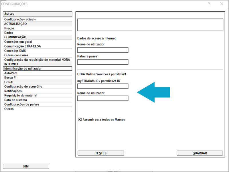 O utilizador EKTA inserido nas definições em "Identificação do utilizador" requer a função ETKA "Aceitação de encomendas" e a função Partslink24 "Gestor de encomendas". Tal pode ser atribuído pelo administrador da ETKA.